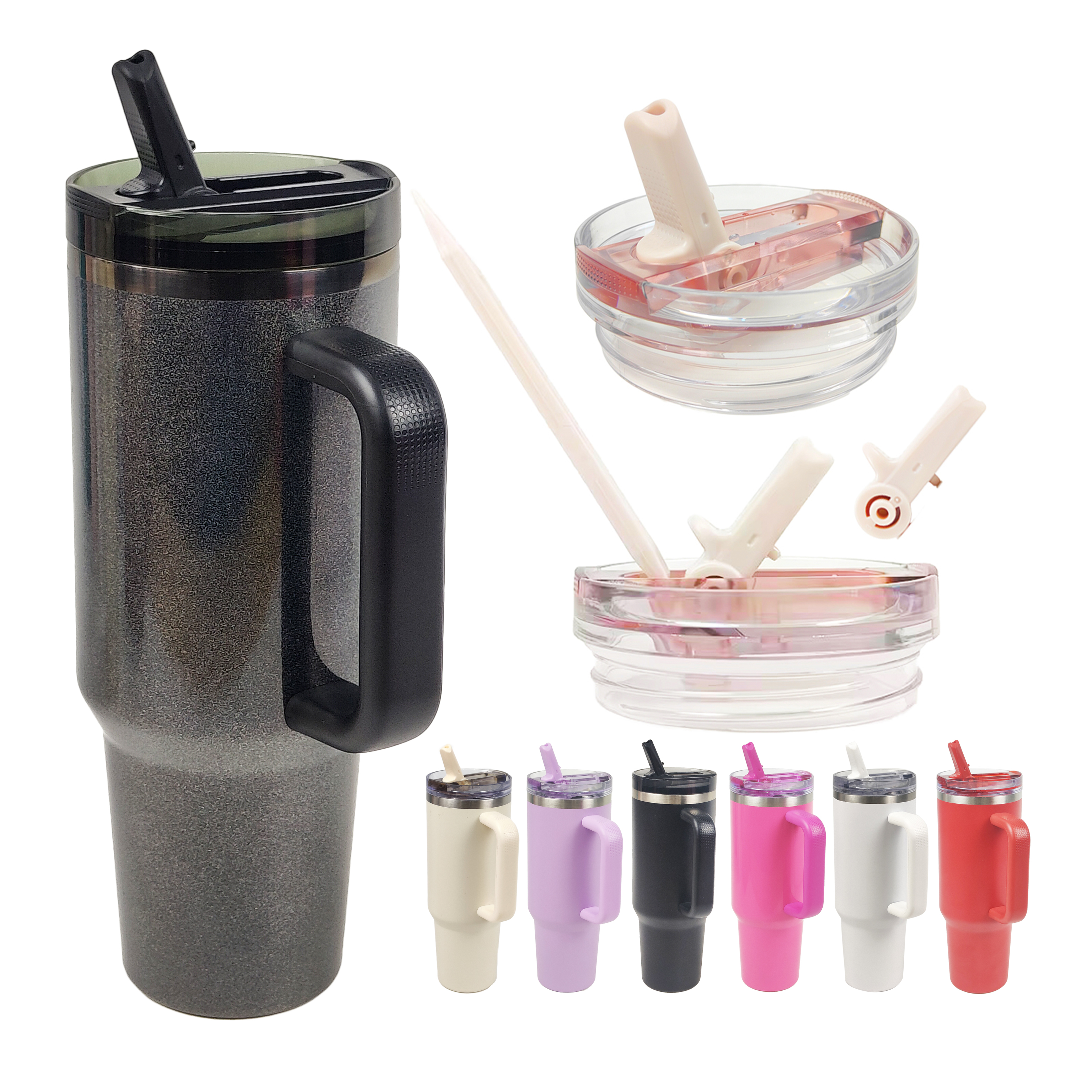 2025แก้วสำหรับเปลี่ยนขนาด40ออนซ์ฝาหลอดแบบถอดออกได้พร้อมที่จับสำหรับถือและซีลที่ถอดเปลี่ยนได้