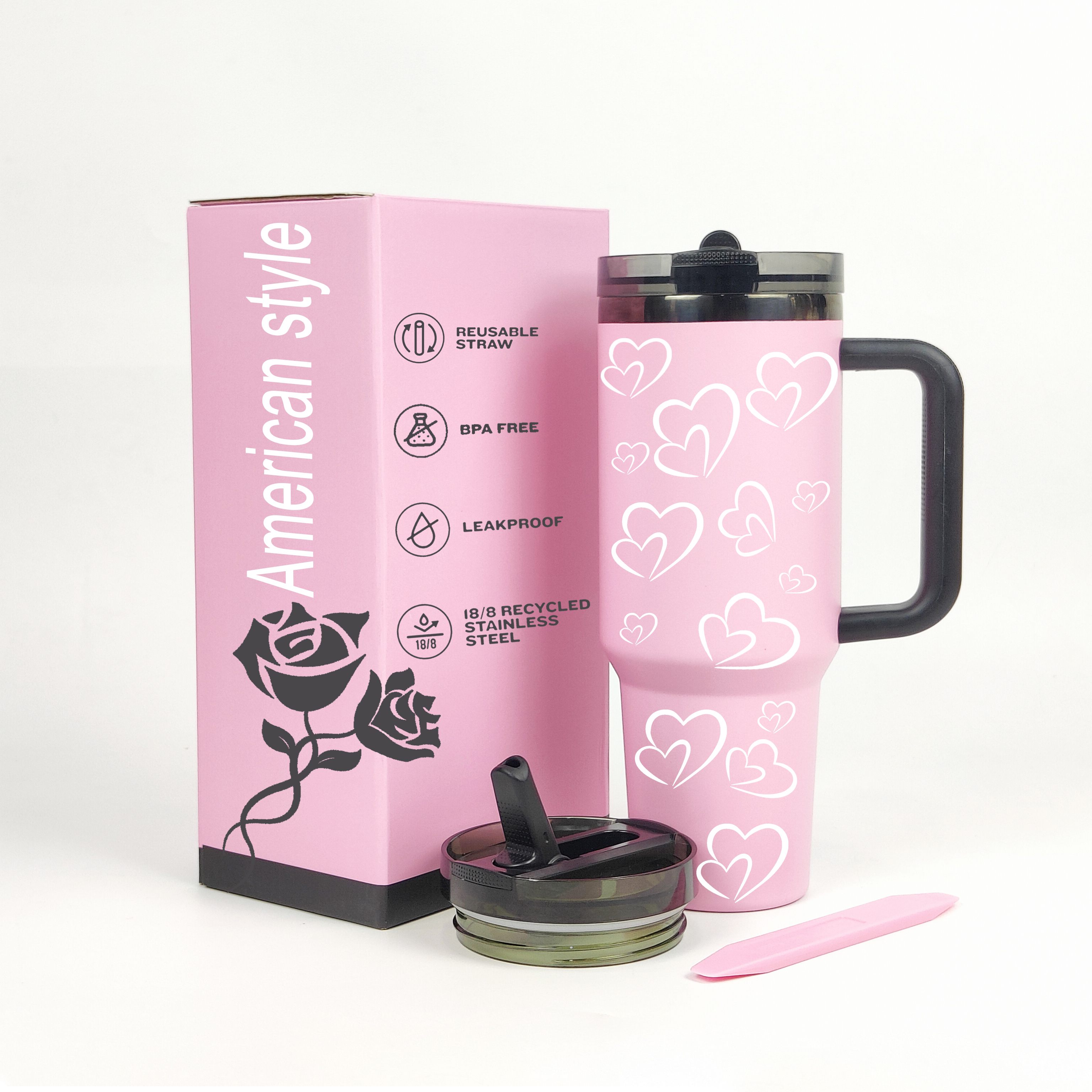 Yeni tasarım sızdırmaz toz kaplı kupa 40oz paslanmaz çelik messi keçi pembe sevgililer tumbler bardaklar protour flip ile hasır kapak